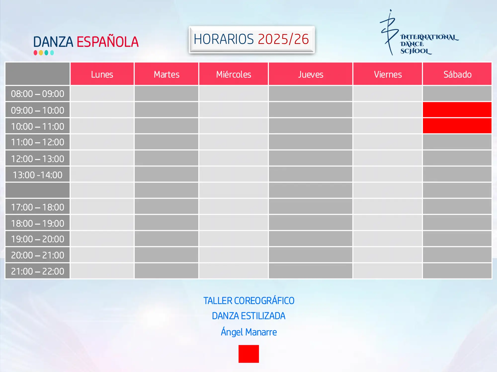 El Taller Coreográfico de Danza Española en Alicante de IDS, impartido por Ángel Manarre, está dirigido a bailarines de nivel medio y medio-avanzado que desean profundizar en la danza estilizada, la coreografía y la interpretación en un formato quincenal.